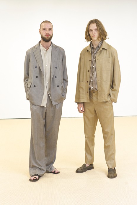 カラーは生成りと亜麻色の組み合わせ、エンジのような赤も充実。これまでより、落ち感があり、より薄くて軽い素材が増えています。コットン以外の素材、リネンやシルクなども充実しており、アウターはコートの他に、より仕立や縫製にこだわったジャケットの展開が増えています。