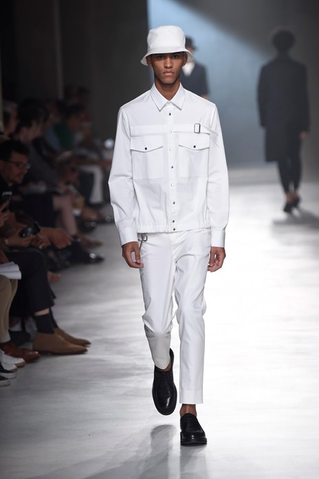 ジャッドの作品は、ミラノのvia Ceresio 7 に位置する新しいニール バレットのヘッドクォーターにも影響を与えています。大胆で角ばった形、コンクリートで覆われ広々とした空間、ブラック、ホワイト、ガラスのカラーパレットは、2018 年春夏コレクションで初の舞台となります。ミニマリズムやリニアリティ、精密性を表すこのビルの建設中から創造されたコレクションの進化を象徴しています。またそれは、ニール バレットの美を決定づけるクリエイティブなビジョンを強調しています。